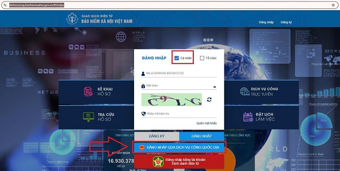Bước 2: Đăng nhập vào trang dịch vụ công BHXH thông qua xác thực bằng dịch vụ công quốc gia