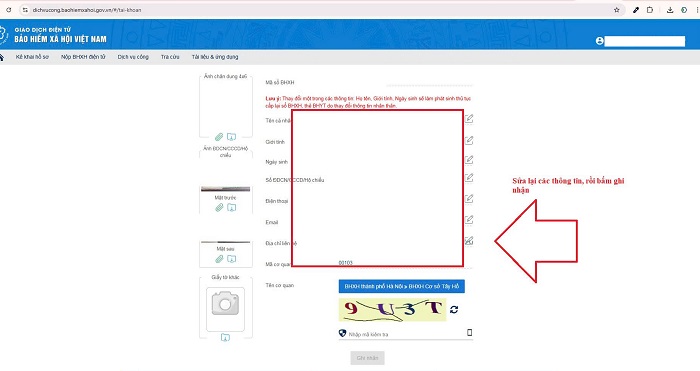 Bước 3: Bổ sung thông tin email, số điện thoại chính chủ vào trang dịch vụ công BHXH